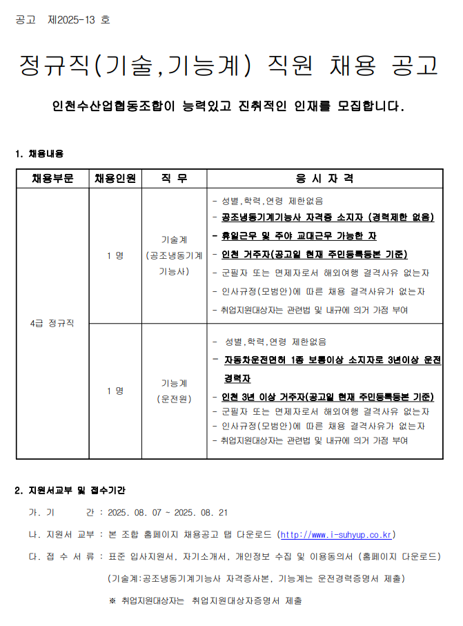 Á¤±ÔÁ÷(±â¼ú,±â´É°è) Á÷¿ø ä¿ë °ø°í-25.08.07