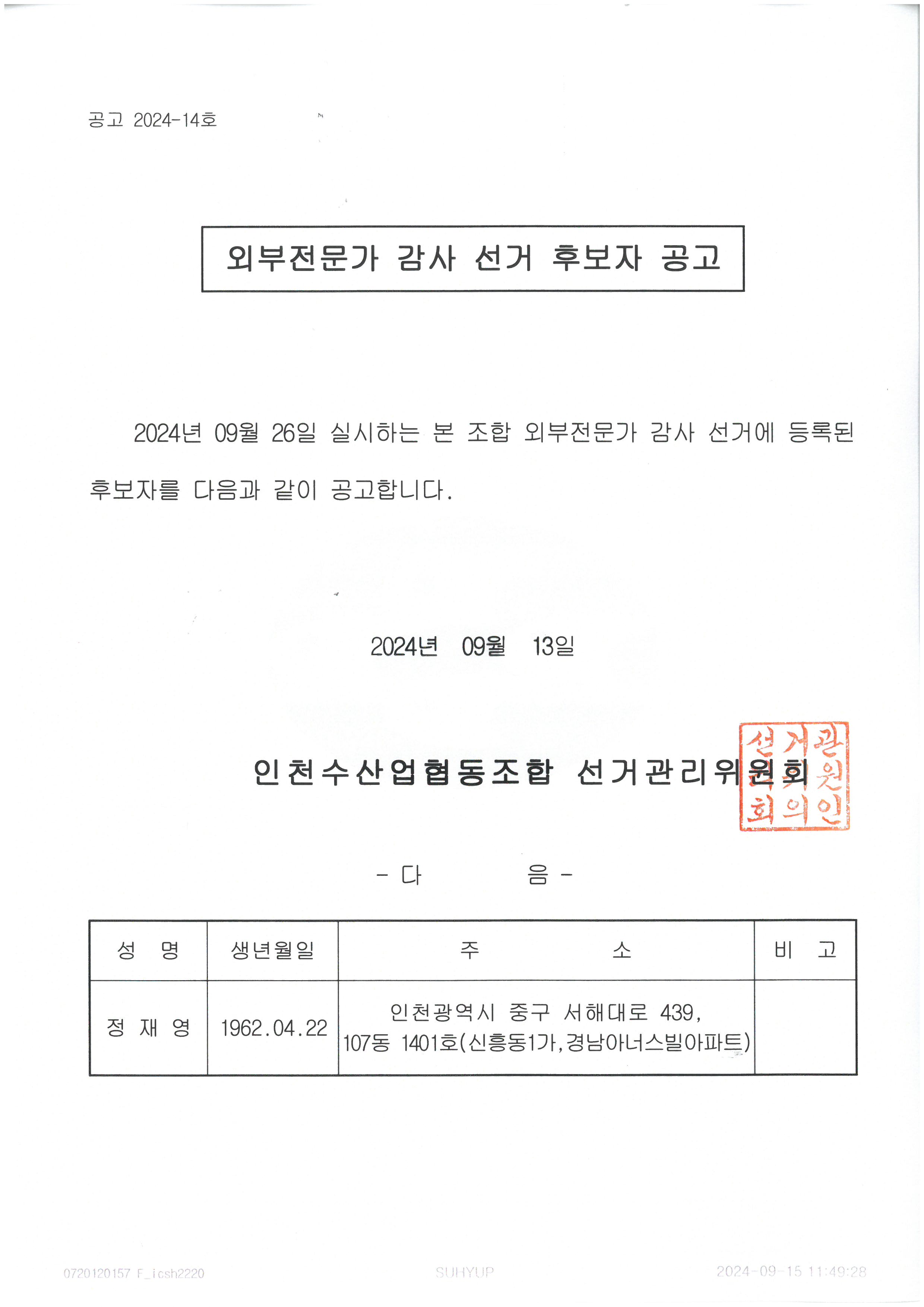 ¿ÜºÎÀü¹®°¡ °¨»ç ¼±°Å Èĺ¸ÀÚ °ø°í