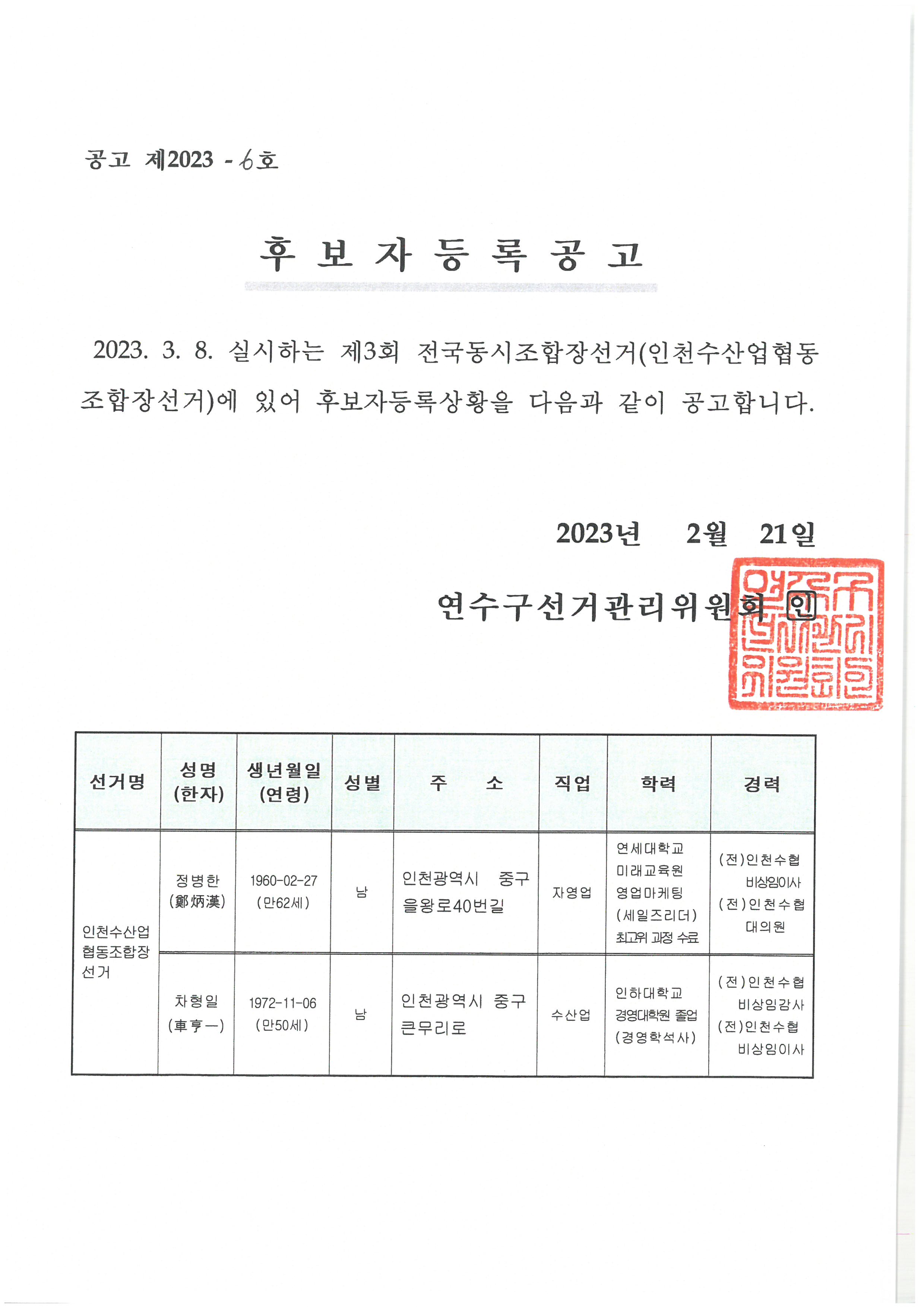 Á¦3ȸ Àü±¹µ¿½ÃÁ¶ÇÕÀå¼±°Å Èĺ¸ÀÚ µî·Ï°ø°í